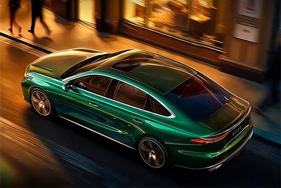 侧面采用悬浮式车顶和溜背式造型,辅以简洁流畅的型面处理,使其风阻系数仅为0.191Cd。车身尺寸方面,其长宽高分别为4935mm*1915mm*1510mm,轴距为2915mm。尾部搭载飞舞流光LED尾灯,并支持智慧交互灯语,进一步强化科技氛围。