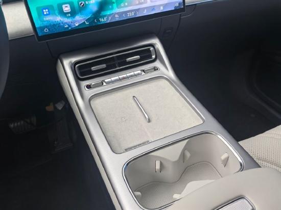 中央通道使用了双层式的布局,下层整体的储物能力确实是比较优异的,不仅靠口面积大,而且还有隐藏式的储物空间。而上层位置则是配备了手机50W的无线充电面板,如果能配备双充电就更加完美了。
