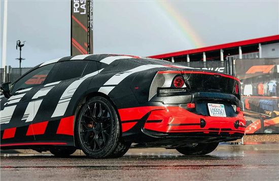 车尾部分,新车预计定位为中大型GT轿跑车,后备厢上配备了可电动开启的扰流板,并安装了格尼襟翼,尾灯组采用圆形设计,复古感十足。
