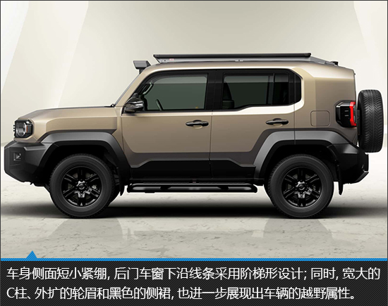 车型尺寸方面,新车长宽高分别为4575mm*1855mm*1960mm,轴距2580mm;是一个介于小型SUV与紧凑型SUV之间的尺寸。对于一款注重通过性和可玩性的越野车,车身尺寸并非越大越好,需要在空间和灵活性之间找到平衡点。
