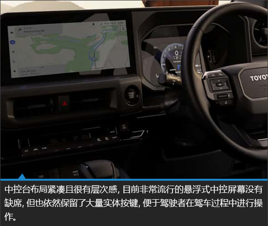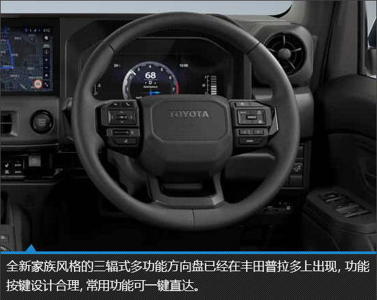从整体设计来看,虽然丰田兰德酷路泽FJ的内饰与普拉多相似度较高,但依然通过细节之处的变化,营造出不同的效果。作为一款面向年轻人的车型,丰田兰德酷路泽FJ更追求年轻化和设计感。