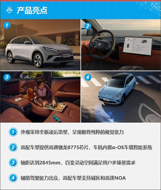 内饰整体风格舒适典雅,标配15.6英寸中控屏,屏幕显示清晰、界面美观且操作流畅。车机内置α-OS车载智能系统,高配车型甚至提供了业内领先的高通骁龙8775芯片。此外,车辆支持四区域语音唤醒识别,具备语音连续识别、可见即可说等功能,交互体验出色。