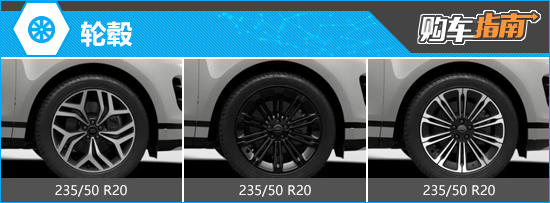 轮毂方面,2026款路虎揽胜极光L提供3种轮毂可以选择,尺寸均为20英寸。入门车型标配深灰色花瓣样式轮毂,且支持选装熏黑多辐样式轮毂,与之匹配的轮胎规格均为235/50 R20;顶配车型配备深灰色多辐样式轮毂,轮胎规格为235/50 R20。