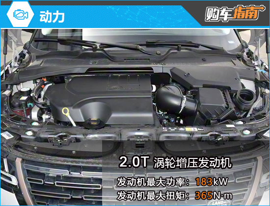 动力方面,2026款路虎揽胜极光L搭载2.0T涡轮增压发动机,发动机最大功率183kW、最大扭矩365N·m,与之匹配的传动系统为9挡手自一体变速箱。此外,全系车型均采用前置四驱的驱动方式,配备后桥限滑差速器,具备一定的越野能力。