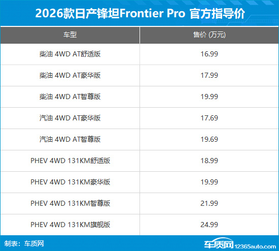 日产锋坦Frontier Pro车型是品牌第一款在中国设计、研发、生产的国际化车型,其不仅有着新潮的外观,内部配置也十分丰富,并且针对国内市场需求进行了深度思考。对于皮卡爱好者来说,其多样的动力形式,也可以更好地满足消费者的多元化需求。