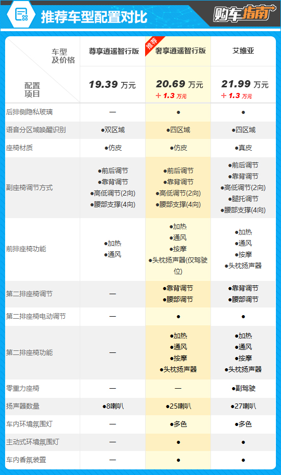 至于顶配车型艾维亚,除了增加专属标识、内饰用料更加考究外,配置方面提升幅度不大,而其价格却达到21.99万元,性价比不高。