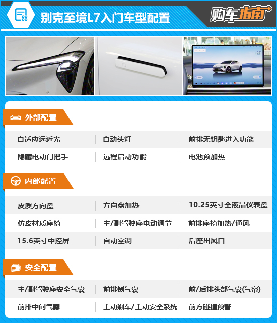 别克至境L7的入门车型为尊享版,售价17.39万元。从配置来看,入门车型在主被动安全、灯光系统以及外部功能方面表现令人满意,满足日常使用需求没有问题。不过,入门车型在智能化方面表现不尽如人意,缺少逍遥智行高阶辅助驾驶、高通骁龙8775芯片等核心配置,同时座椅功能也相对较少,并且仅提供8个扬声器。对于一款定价接近18万元的中高端新能源轿车,其整体配置水准仅能满足基础出行需求,无法提供更高阶的智能化体验,不建议作为首选。