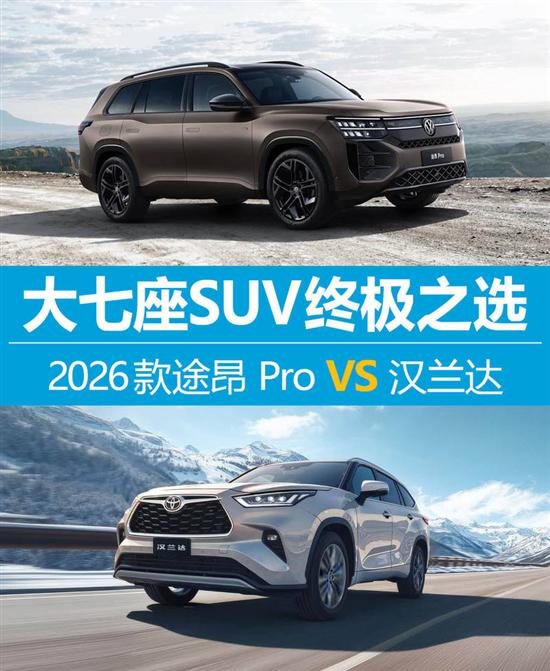 对于计划购入大七座SUV的家庭来说,2026年的市场选择格外丰富。上汽大众2026款途昂 Pro以“全境大七座智能SUV”的定位强势登场,不仅新增380TSI黄金动力版本,升级智能驾驶辅助系统,更是“一口价”将起售价下探至25.99万元。而广汽丰田汉兰达作为同级“常青树”,也在凭借多年积累的可靠口碑,配合智能化配置升级持续“圈粉”。两款车型指导价高度重叠,究竟该如何抉择?我们不妨从家庭用车的核心需求出发,进行一场全方位的实力比拼。