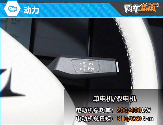 动力方面,新车提供增程和纯电两种动力形式。增程版采用1.5L发动机+后置单电机动力总成,发动机最大功率77kW,电动机总功率160kW,CLTC纯电续航里程308km,CLTC综合续航1308km;纯电版车型提供单电机和双电机两种版本,电动机总功率分别为200kW和400kW,CLTC纯电续航里程分别为650km和565km。
