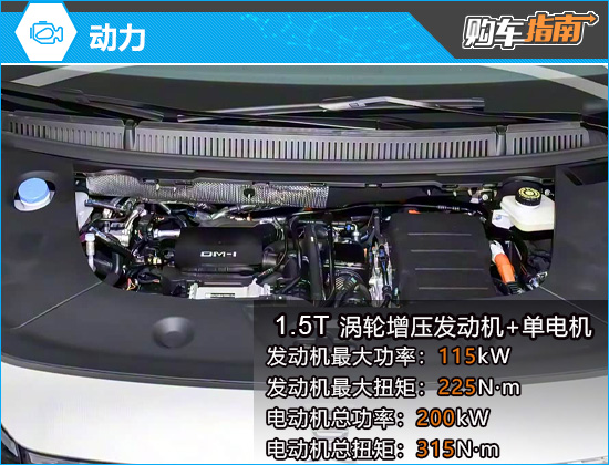 动力方面,新车搭载第五代DM技术,插混系统由1.5T发动机与前置单电机组成,发动机最大功率115kW,最大扭矩225N·m,电动机总功率200kW,总扭矩315N·m。电池能量提供20.39kWh和36.6kWh两种版本,CLTC纯电续航里程分别对应100km和203km/218km(长续航),CLTC综合续航最高可达1163km。