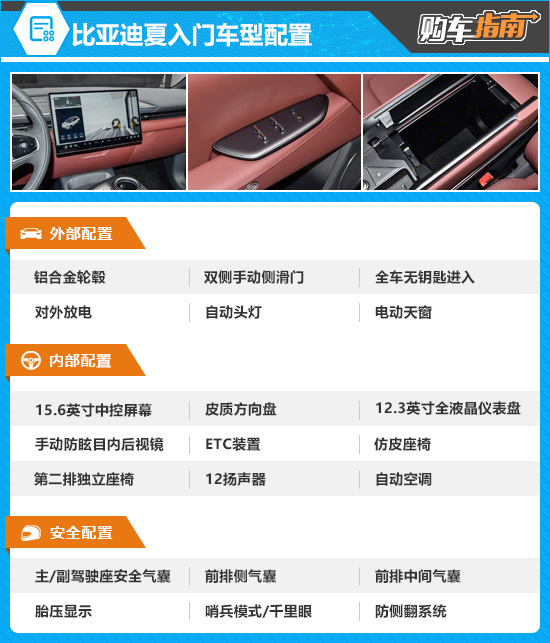 2026款比亚迪夏入门车型为100KM进取型,售价20.68万元。其配置表现已能够满足基础的家庭用车需求,配备了双侧手动侧滑门、电动天窗、仿皮座椅、自动空调、哨兵模式/千里眼等功能。不过,其在舒适性、便利性以及质感营造方面仍较为初级,同时纯电续航里程也未能体现出优势。考虑到在用车体验上与高配车型差距明显,因此其并非全系性价比最高的选择。