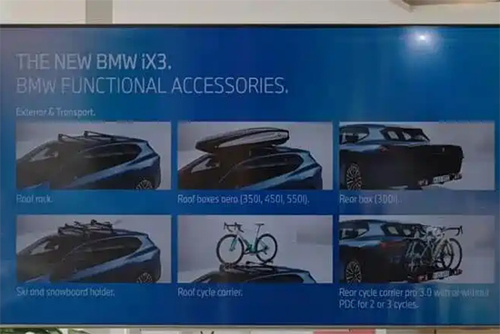 从此次曝光的配置信息来看,全新宝马iX3将提供车顶行李架,以适配储物箱或滑雪板支架。还支持选装车顶或车尾自行车架,后者可容纳最多三辆自行车。同时,官方表示前排座椅会配备通风功能,白色方向盘则仅会随白色内饰提供。