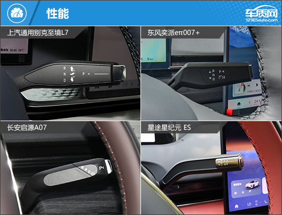 外部配置方面,四款车型基础配置都比较全面,仅在细节方面有所差异。其中,东风奕派eπ007+独享电动扰流板和辅助驾驶灯,运动感和科技感都更强一些;长安启源A07则独享后排侧隐私玻璃,在尊贵感的营造上更胜一筹。上汽通用别克至境L7和星途星纪元 ES则均配备前排侧窗多层隔音玻璃,对于噪音的控制更加到位。