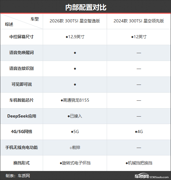 2026款上汽大众朗逸Pro共推出7款车型,在数量上与2024款上汽大众朗逸的在售车型保持一致。指导价方面,新款车型的起售价与老款车型相同,均为12.09万元,顶配车型则降低了6000元,消费者购车成本更低。本次对比选择了两款售价相近的车型,以便能够更加直观地看出新老款车型在配置层面的具体差异。