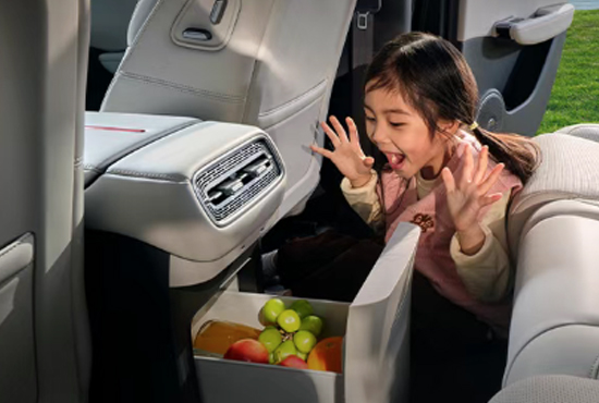 此外,全车储物空间多达31处,标配6L智能冷暖双用冰箱,日常存放水果、饮料十分方便。