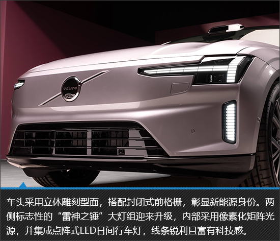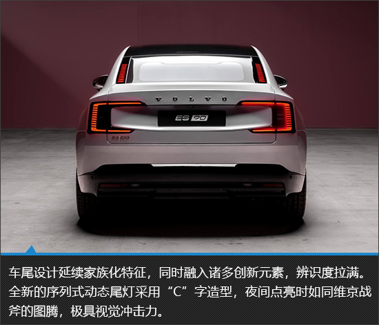 沃尔沃ES90外观延续斯堪的纳维亚极简精髓,巧妙融合家族经典与电动科技感。立体车头、升级后的像素化“雷神之锤”大灯搭配嵌入式激光雷达,充分彰显了新能源身份;车尾“C”字形序列尾灯辨识度拉满,掀背尾门与可放倒座椅更添实用,整体实现了颜值、科技与功能性的均衡统一。