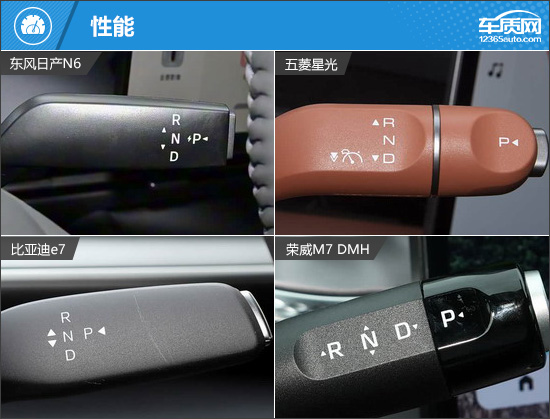 内饰设计方面,四款车型均采用新能源车型常见的简洁式设计,悬浮式液晶仪表和中控屏幕的组合,与消费者的需求相符。此外,电子式怀挡换挡也在四款车型上出现,这种设计更有助于前排储物空间的优化。四款车型的方形盘都采用平底式设计,不同之处在于,东风日产N6和荣威M7 DMH为双辐式,另外两款车型是三辐式。