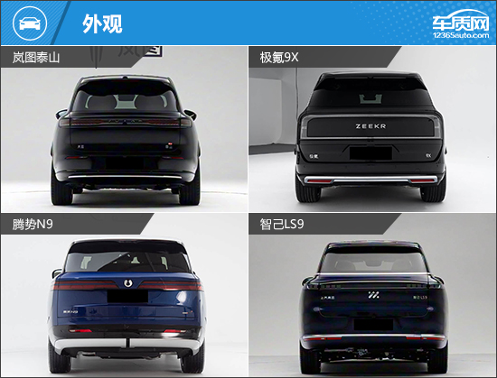 极氪9X前脸配备超大尺寸镀铬格栅,气势十足;尾部搭载环幕星钻贯穿尾灯,灯组细节精致,科技感扑面而来。腾势N9外观设计偏向沉稳规整,封闭式前脸搭配双星冕分体灯组,简约中透着商务质感。智己LS9则采用“星际之门”贯穿式灯语系统,支持12种交互模式,科技交互感拉满。