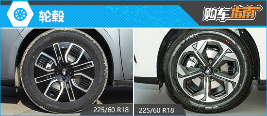 轮毂方面,新车仅提供一种尺寸,但有飞花逐月轮毂和四叶草轮毂(限时免费)两种样式可选,后者需要加价1000元选装。轮胎方面,两种样式轮毂均匹配规格为225/60 R18的轮胎。