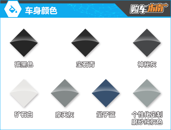 车身颜色方面,新车提供7种配色供消费者选择。其中,个性化定制磨砂纯灰色为顶配车型专属标配,其余配置车型如需该配色,可通过选装获得,官网显示价格为8000元。