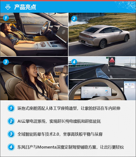 内饰方面,东风日产N6采用360度环抱式座舱和超85%软包覆盖,配合87%的“得房率”,带来家的温馨与舒适。整车内饰还获得母婴级亲肤认证和中汽中心零甲醛认证。此外,部分车型还配备自研的“凝脂材质”座椅,细腻触感堪比皮革。东风日产引以为豪的AI零压云毯座椅,内置“自适应体态”AI算法,支持OTA升级,后排则搭载全新研发的零压云毯大沙发。