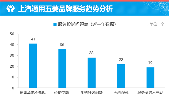 从服务投诉问题点来看,“销售承诺不兑现”成为车主投诉相对较多的服务问题。通过进一步分析可知,该问题主要来自五菱缤果车型。