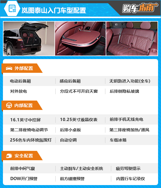 岚图泰山坐拥六座大空间、华为高阶辅助驾驶与800V超混动力三大核心优势,兼顾舒适豪华与长续航强动力。对于意向大型插电混动SUV的消费者而言,这款实力旗舰不容错过。那么对于新车应该如何选购?本期《购车指南》为您解答。
