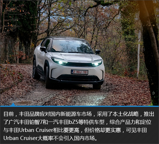 对于在混合动力领域领先但纯电市场发力较晚的丰田而言,丰田Urban Cruiser的登场具有明确的战略意图,这表明丰田正试图通过密集的产品攻势,快速弥补其在全球纯电动产品矩阵上的空白。这与丰田在国内市场的战略不谋而合,但在产品布局方面,国内主要是以大尺寸SUV和轿车为主,而面对欧洲市场,丰田Urban Cruiser这样的小尺寸车型更受追捧。
