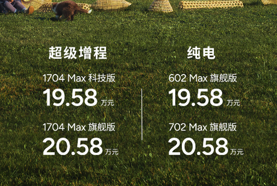 动力方面,增程车型搭载1.5T涡轮增压发动机和单电机,电动机总功率218kW,CLTC纯电续航里程为430km,CLTC综合续航超过1704km;纯电车型搭载单电机,电动机总功率218kW,根据配置不同,CLTC纯电续航里程分别为602km、702km。