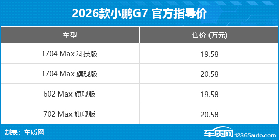 1月8日,2026款小鹏G7正式上市,新车共推出4款车型,官方指导价为19.58-20.58万元,有增程和纯电两种动力形式。同时,官方还提供智能升级包选装项目,限时赠送购车礼、交付礼等购车权益。