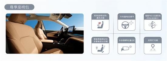 动力方面,增程车型搭载1.5T涡轮增压发动机和单电机,电动机总功率218kW,CLTC纯电续航里程为430km,CLTC综合续航超过1704km;纯电车型搭载单电机,电动机总功率218kW,根据配置不同,CLTC纯电续航里程分别为602km、702km。
