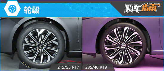 轮毂方面,2026款东风日产天籁提供两种样式可选。顶配车型配备19英寸钻面光刃轮毂,视觉效果更加精致、运动,匹配235/40 R19规格轮胎;其余车型则搭载17英寸多辐花瓣轮毂,造型偏向家用,轮胎规格为215/55 R17。