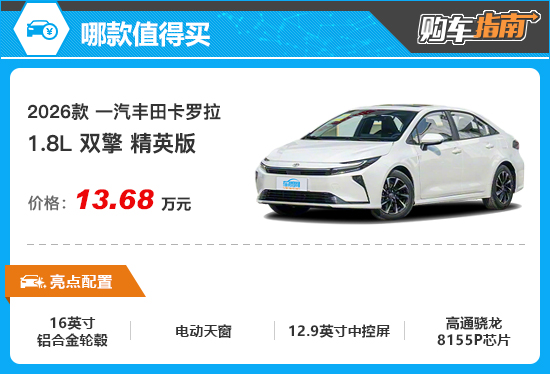 综上所述,对于2026款一汽丰田卡罗拉,售价13.68万元的1.8L双擎精英版性价比相对更高,厂家直销价10.5万元,消费者在选购时可以优先考虑。