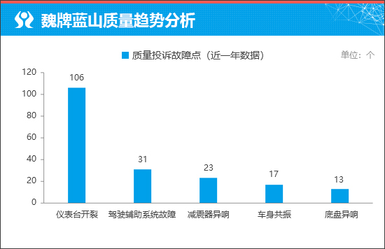 作为改款车型,2026款魏牌蓝山智能进阶版是否会出现质量问题的隐患?对此,我们将从过去一年魏牌蓝山车型的故障问题入手,通过对故障问题的分析,从而初步预测未来新车质量问题的发展趋势。