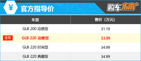 2026款奔驰GLB共推出4款车型,官方指导价区间31.19-34.99万元。相比老款车型,2026款奔驰GLB取消了四驱(4MATIC)版本,并将GLB 200(1.3T)车型精简至1款。