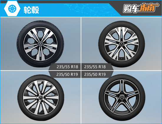 2026款奔驰GLB提供4款轮毂可选,其中GLB 200 动感型和GLB 220 动感型均标配18英寸双五辐铝合金轮毂,不过样式略有区别;GLB 220 时尚型标配19英寸十辐铝合金轮毂;GLB 220 典藏版则配备AMG双五辐铝合金轮毂,造型更加运动。