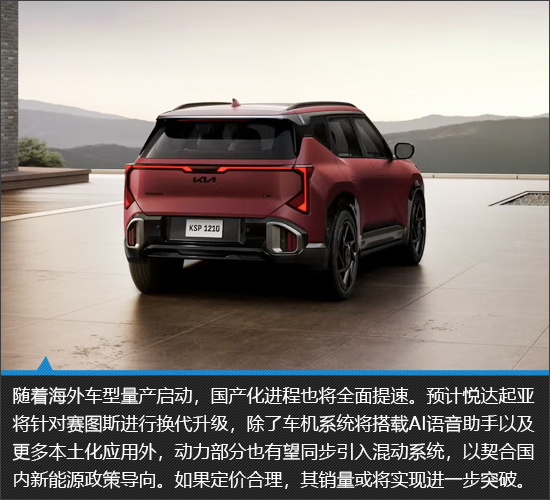 全新一代起亚Seltos通过车身尺寸加长、动力升级以及科技配置强化,显著提升了产品力,硬朗设计风格和混动布局将成为未来抢占细分市场的关键筹码。随着国产车型进入倒计时阶段,其最终售价能否给国内消费者带来惊喜,同样值得关注。