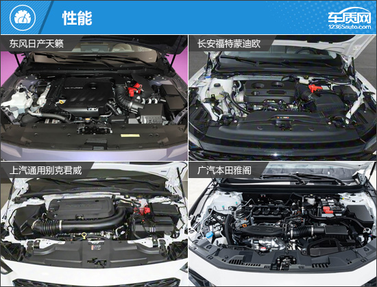 性能方面,四款车型均为传统燃油车。其中,东风日产天籁和别克君威搭载2.0T涡轮增压发动机,另外两款则使用1.5T涡轮增压发动机。具体参数方面,东风日产天籁依旧占据优势;而广汽本田雅阁凭借小排量发动机与CVT无级变速箱的组合,在WLTC综合油耗表现上更为出色。
