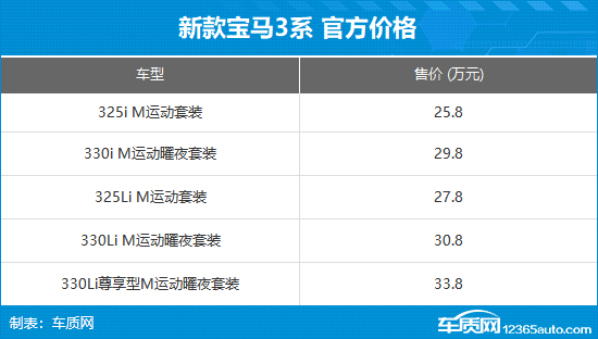 价格方面,新款宝马3系推出5款车型,售价区间25.8-33.8万元,入门款325i M运动套装降至25.8万;纯电i3保留3款车型,售价27.8-33.8万元;X3同样为3款车型,售价31.8-39.8万元,指导价均有下调。