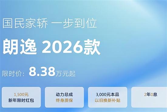 1月20日,2026款上汽大众朗逸正式上市,新车共推出7款车型,官方售价区间为12.09-14.39万元,限时价为8.38万元起。同时,官方还推出新年限时红包、2年0息等上市权益。