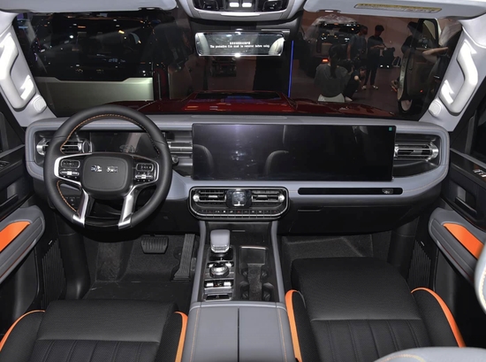 内饰方面,新车在保持硬派取向的同时,整体智能化水平向主流新能源产品看齐。座舱内采用由15.6英寸中控屏与15.6英寸副驾驶娱乐屏组成的双联屏布局,并搭配10.25英寸液晶仪表与流媒体后视镜,形成多屏联动的交互体系。车机系统由高通骁龙8155座舱芯片提供算力支持,支持AI语音交互及多媒体功能。配置层面,其标配了多功能方向盘、真皮座椅以及具备独立功放的10扬声器音响系统,有效兼顾长途穿越过程中的舒适性需求。