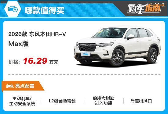 因此,综合来看,如果您正在关注2026款东风本田HR-V,那么Max版值得您优先考虑。
