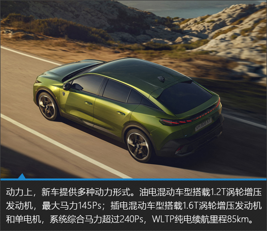 新车依旧遵循跨界车型的理念,整体设计新潮大胆却又不会过于张扬。极具视觉冲击力的格栅搭配狮爪日行灯,令车头看起来充满战斗气息。棱角分明的腰线和溜背式车顶的组合,营造出优雅灵动的侧颜。值得一提的是,新车提供全新的闪光绿色(Flare Green)车漆,漆面质感高级,十分个性。