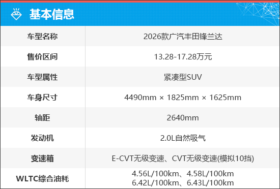 凭借出众的口碑、均衡的性能与较高的性价比,广汽丰田锋兰达自推出以来,收获众多消费者青睐,成功跻身热销车型行列。面对日趋激烈的市场竞争,广汽丰田选择对这款SUV进行全面优化升级。近日,2026 款广汽丰田锋兰达正式上市,新车究竟具备哪些亮点?市场前景又将如何?本期《质选车》将为大家重点剖析。