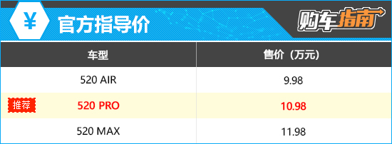 动力方面,新车全系搭载前置单电机,电动机总功率150kW,电动机总扭矩255N·m,CLTC纯电续航里程520km。