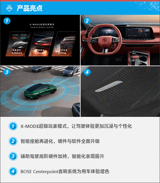 2026款MG7中高配Trophy+版本搭载“X-MODE超级玩家模式”,赋予驾驶者高度自由的个性化性能调校空间,提供超过150种自定义驾驶模式组合。系统内置赛道地图竞速挑战以及三种直线加速挑战模式,可记录个人最佳成绩,并与官方榜单同步,让驾驶更有乐趣。