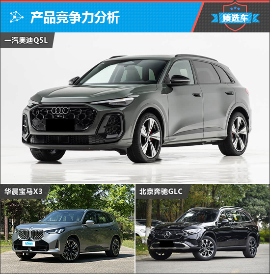 提到豪华中型SUV,自然会想到宝马X3和奔驰GLC这两个奥迪Q5L的老对手,前者已在去年完成换代,后者也推出了年度改款车型,实力都不容小觑。此次我们就将上述两款车型列为竞争对手,看看全新奥迪Q5L如何应对。