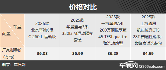 本次参与对比的四款车型分别为奔驰C级、宝马3系、奥迪A4L和凯迪拉克CT5,随便拎出一款都是如雷贯耳的名字。毫无疑问,BBA“三驾马车”在国内豪华品牌阵营的影响力无出其右,虽然凯迪拉克只能暂居二线豪华品牌之列,但也依然是很多消费者绕不开的选择。