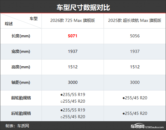 车型尺寸方面,新款车型的长宽高分别为5071mm*1937mm*1512mm,轴距为3000mm,车身长度相比老款车型增加15mm。轮毂方面,新款车型轮毂造型更时尚,尺寸为19英寸,且支持选装升级至20英寸。