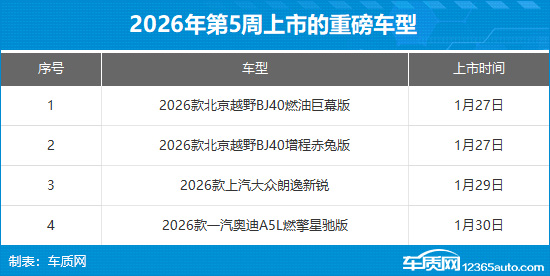 回顾上周国内车市,北京越野推出了新款BJ40,新车在原有基础上增加了多项改装套件,提升了越野性能;新款上汽大众朗逸新锐上市,新车调整了部分配置;一汽奥迪A5L新增燃擎星驰版车型,新车在外观、配置上均有亮点。接下来我们将对上周上市新车进行汇总,看看有没有您喜欢的!